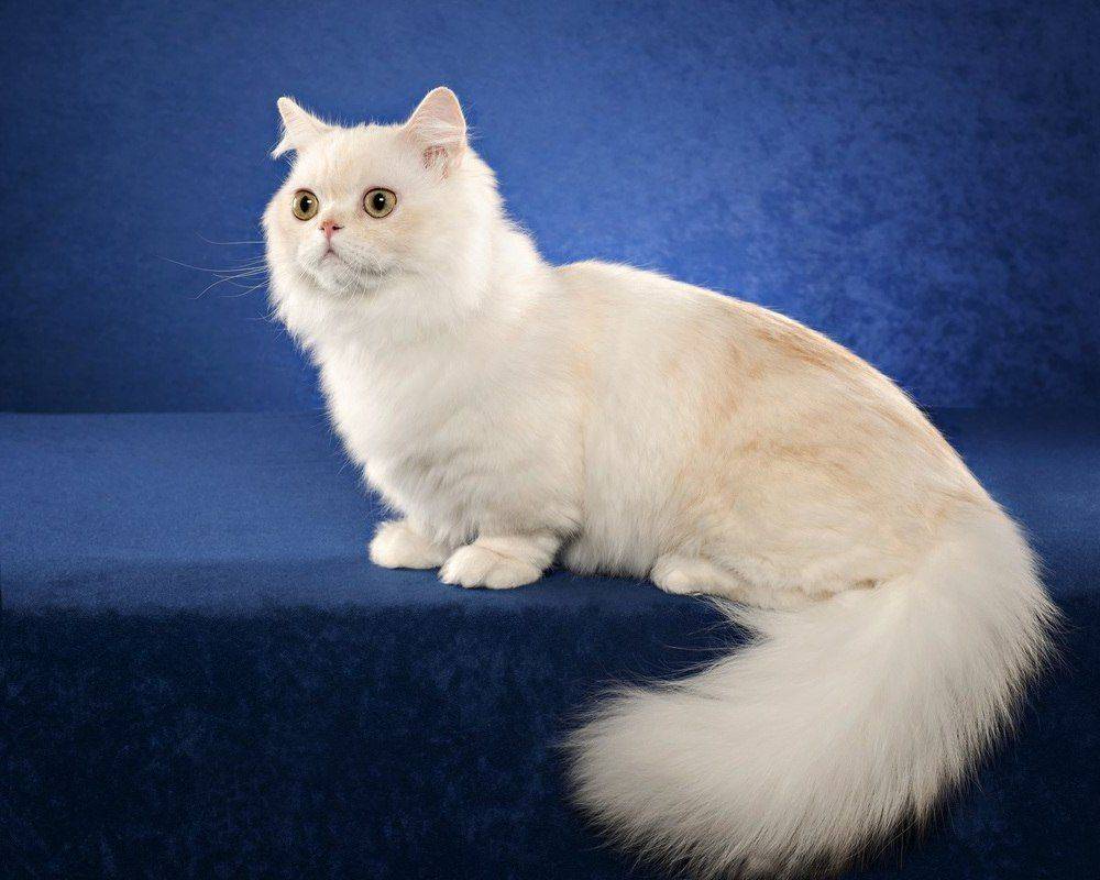 Пушистая и коротконогая порода высотой до 30 (коты) или 25 см (кошки). Вес — 3-4 кг (коты) или 2,3-3,5 кг (кошки).