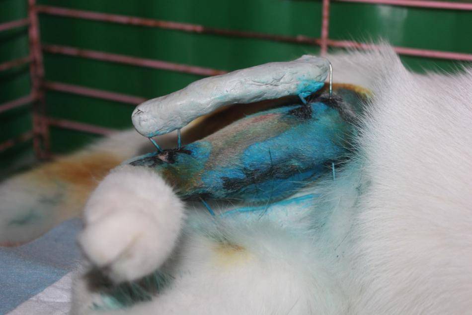 - Раны. Механические повреждения тканевых структур, характеризующиеся нарушением целостности кожи и слизистых оболочек, называется раной. Сюда относятся травмы уха, глаз, раны на боках или лапах. В зависимости от того, что стало причиной повреждения целостности и локализации раны, различают резаные раны, ушибленные, размозженные, кусанные, колотые и отравленные. При проникновении в открытую рану токсических веществ (ядов), развиваются миксты.