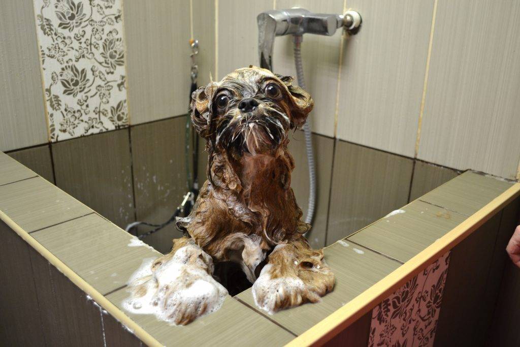 Гигиеническое мытье проводится по мере появления запаха или загрязнения шерсти питомца. Для этого используют специализированные шампуни для собак. Выбирают средство, учитывая финансовые возможности, породные особенности шерстного покрова.
