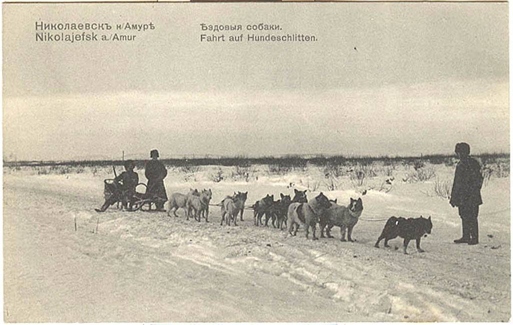 Упряжка сахалинских хаски около Николаевска-на-Амуре. Открытка 1903.