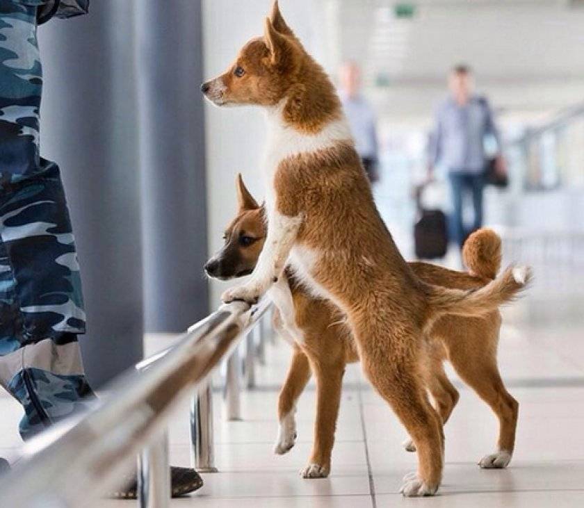 А еще они помогают обнаружить аэропортных воришек, которые вскрывают багаж и стирают следы своих пальцев. Запах-то остается! собака может хорошо работать 20-30 минут, а потом ей требуется смена. О том, что у собаки упал тонус, говорит ее хвост, закрученный в кольцо — наследство от лайки: если хвост опустился, собачка устала Только в России есть уникальные животные, которых вывели специально для этой цели.