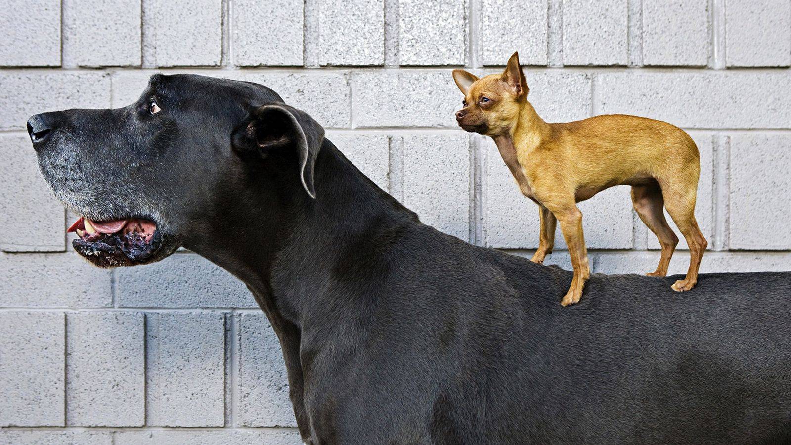 Интересно. Самой большой породой собак в мире считается ирландский волкодав, чей вес составляет более 100 кг, а рост в холке – около 80-85 см. А самая маленькая порода – это чихуахуа. Весит крошечная собачка всего 1500 гр, а ее рост составляет 10-12 см в холке.