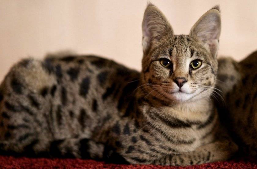 Эта гибридная порода происходит от африканского сервала и домашней кошки. Она отличается крупными размерами и внешностью настоящего хищника. Элитная и дорогая кошка с короткой пятнистой шерстью любит прогулки и водные процедуры и нуждается в личном пространстве.