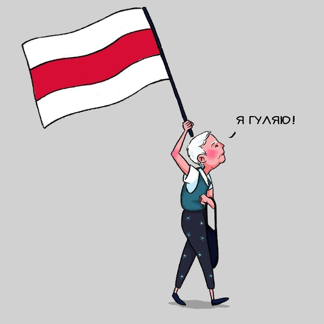 В августе появилось видео, где женщине с БЧБ-флагом силовики перегородили путь. Но та продолжила идти, ответив: «Я гуляю!»
