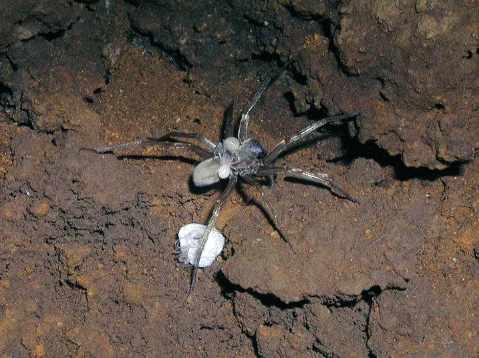 Пещерный гавайский паук-волк отлаживает всего 30 яиц в кладке.