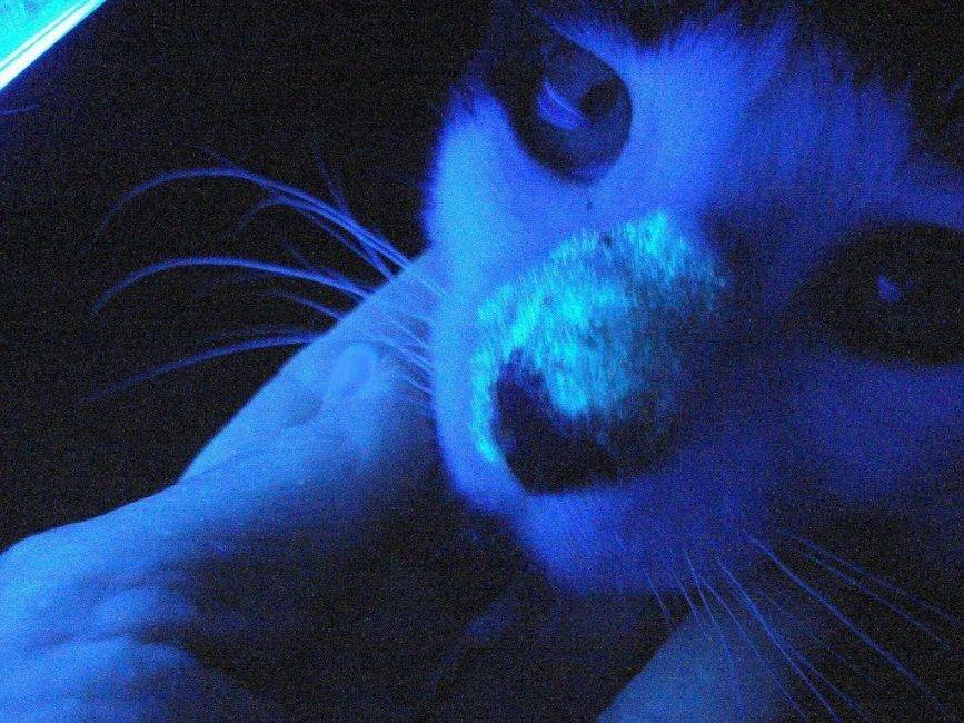 Ветеринар легко определит причину болезни с помощью специальной лампы Вуда – свет, попадая на отмеченные лишаем участки кожи, приобретает зеленый оттенок, и очаги поражения хорошо видны. Однако такой метод может дать сбой в случае, если грибки не светятся, а свечение происходит по причине совсем других микроорганизмов, не являющимися возбудителями лишая. В таком случае лучше дополнительно взять цитологический анализ и пробы шерсти.