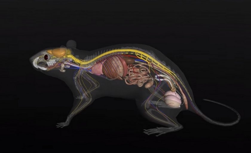 Всего в скелете крысы 264 кости. Позвоночник имеет 3 отдела: шейный, грудной и крестцовый.