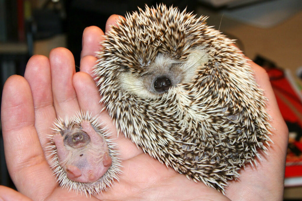 Беременность самки ежа длится около 50 дней. Рождается за один раз от 3 до 8 ежат. Рождаются они слепые, голые, розовые и глухие. Через некоторое время появляются белые первые иголки.