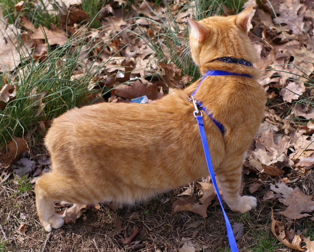 Кошки не ходят рядом с хозяевами, как собаки, скорее человеку придётся гулять следом за питомцем, лишь изредка корректируя его маршрут. Разумеется, на улицу можно выходить с котом, привитым от инфекций, и в специальном ошейнике от блох и клещей.