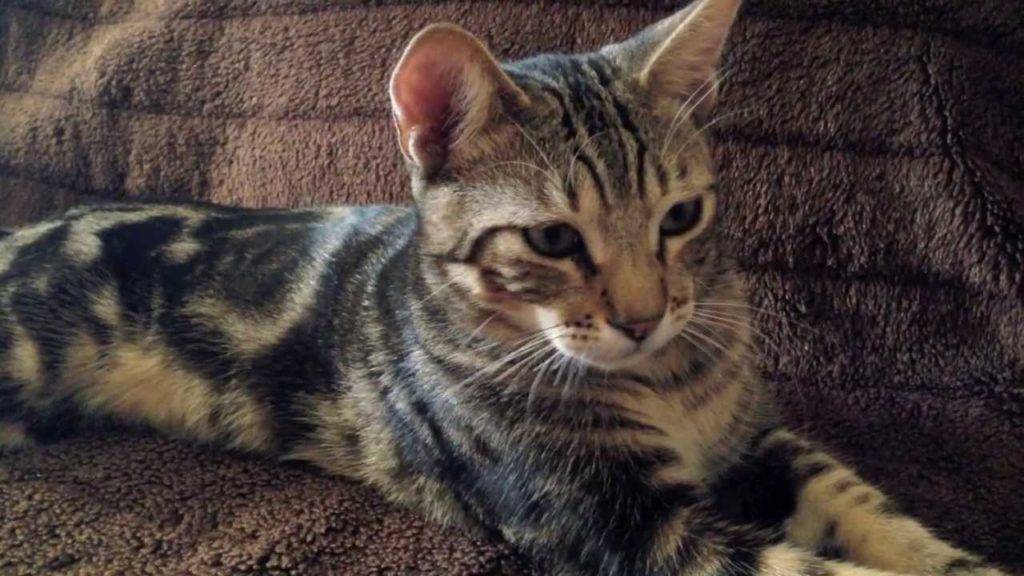 Аборигены прозвали животное «хадзонзо», что в переводе означает «похожий на кору дерева». А ведь правда, шерстка питомца радует глаз оттенками от нежно-кремового до темно-коричневого. А расположение цветных полос на теле кошки делает ее похожей на дикую тигрицу.