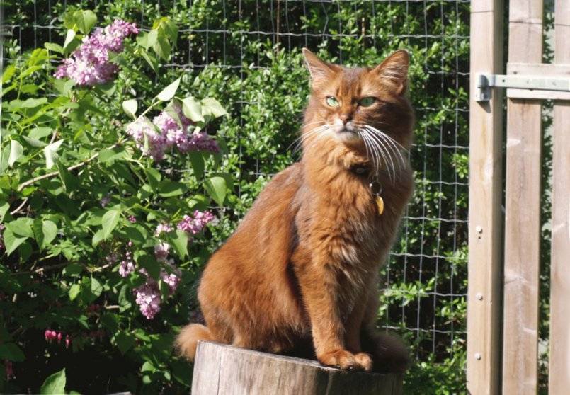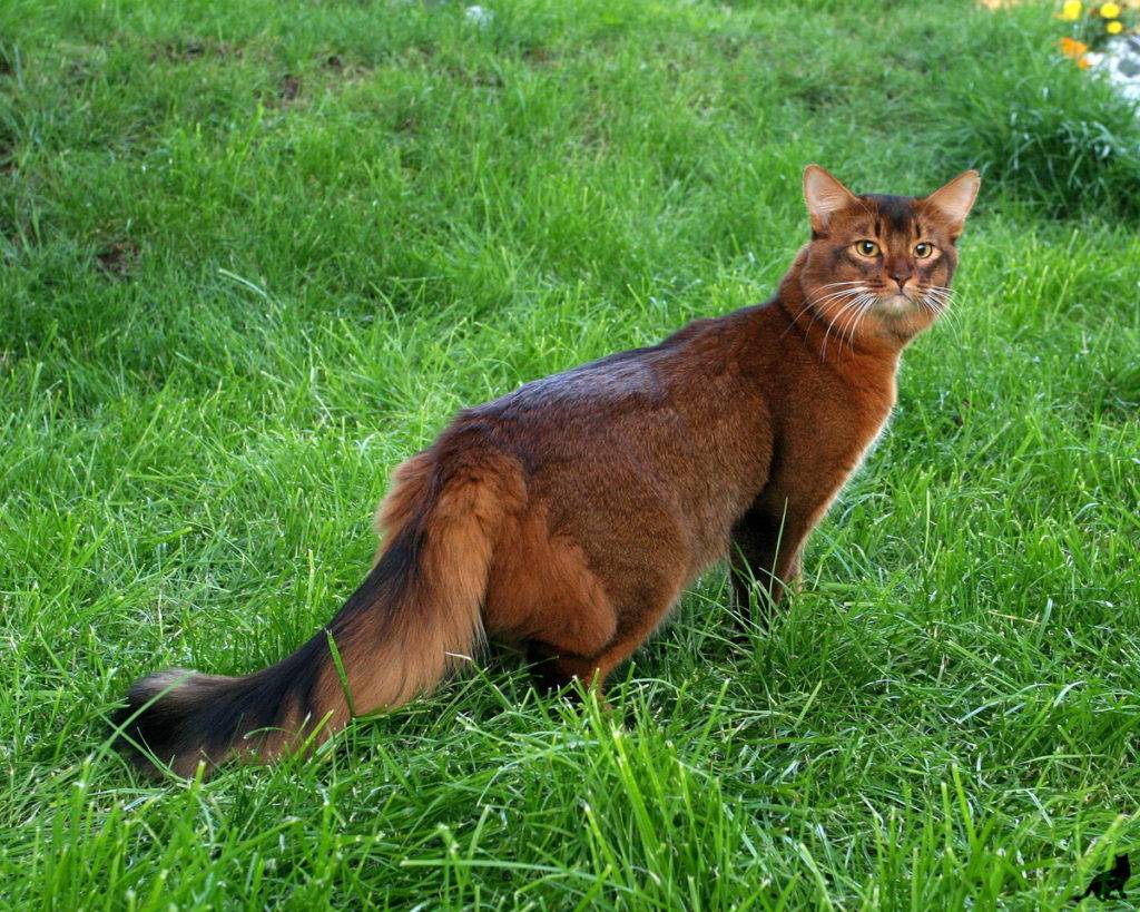 Сомалийская кошка очень любит гулять, отличный кот-компаньон. Ей одинаково нравится как солнечная, так и пасмурная погода
