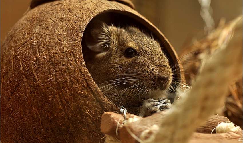 - дегу – удивительные грызуны. Они спят всю ночь, и начинают активную жизнь только в утренние и дневные часы. Этот грызун идеально подойдёт хозяевам маленьких квартир;