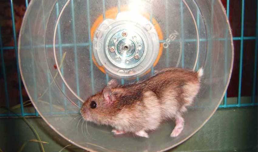 Наиболее безопасными будут тренажеры, выполненные из железа с маленьким расстоянием между прутьев или цельные колесики из дерева. Если конструкция будет сделана из дерева, вы можете не беспокоиться по поводу безопасности вашего хомячка даже, если он прогрызет материал тренажера.