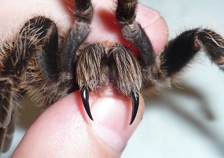 Мощные жвалы, которыми пауки кусают жертву, имеют протоки для яда, они – средство как нападения, так и обороны.