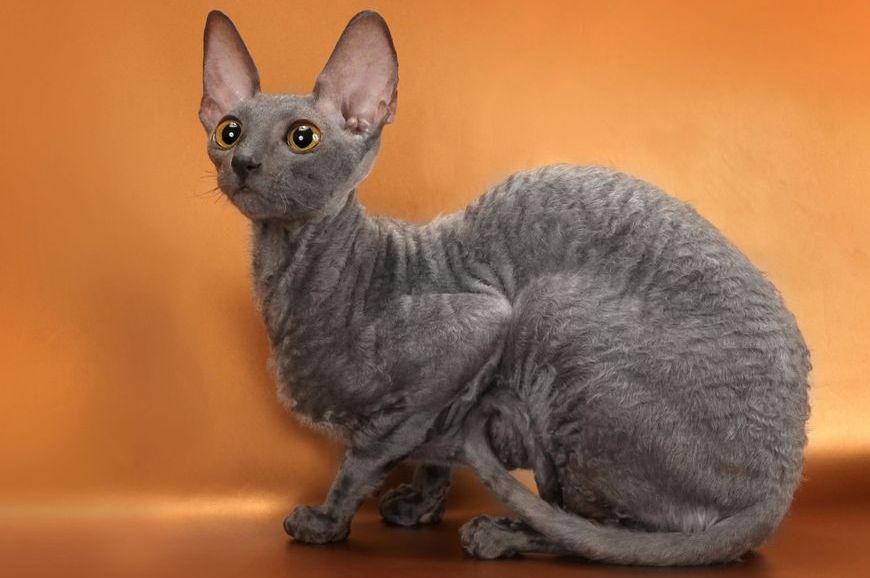 Кошки производят впечатление немощных, но на самом деле это крепкие животные. Голова широковатая, с развитыми скулами, усы кудрявые, уши большие. Глаза желтые, либо зеленые. Шерсть напоминает каракуля.