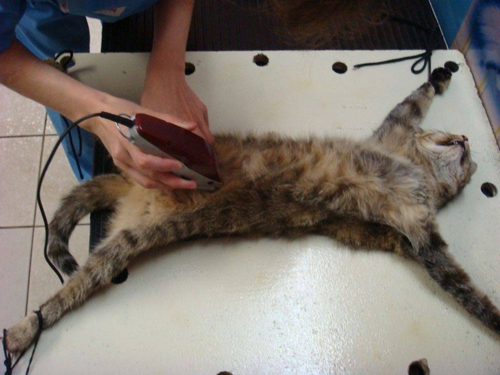 Собрать мочу у кошки достаточно проблематично, поэтому забор биоматериала проводится в ветлечебнице. Выполняется цистоцентез, при котором через живот вводится игла в мочевой пузырь и набирается в шприц необходимое количество мочи. Процедура малотравматична и контролируется врачом с помощью аппарата УЗИ. Метод занимает не более 15 секунд, животное почти не чувствует боли. Если кошка очень боится и ведет себя неадекватно, применяются седативные средства. Цистоцентез не проводится при раке и некрозе мочевого пузыря, кожных заболеваниях на месте введения иглы, деформированном или растянутом мочевике.
