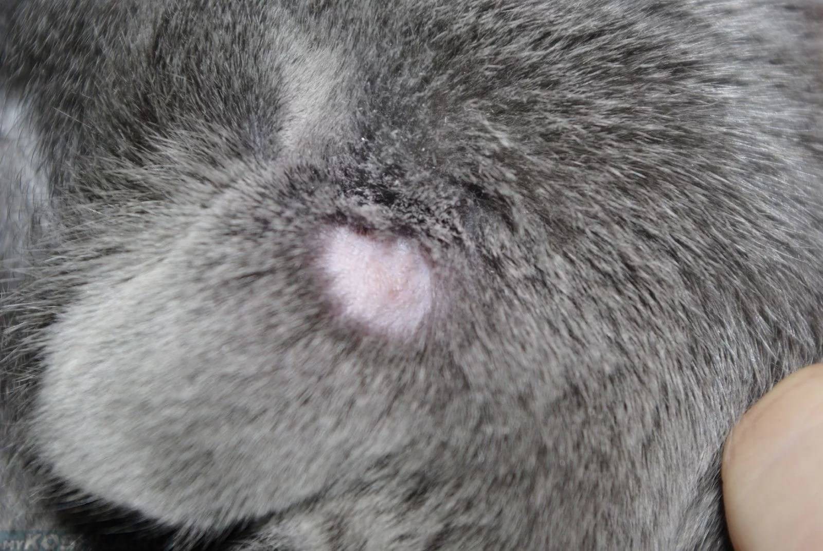 - Грибковые кожные заболевания (лишай, микоз). На теле кота появляются мелкие залысины, сливающиеся со временем в более крупные. Кожа покрывается шелушащимися чешуйками и зудит.