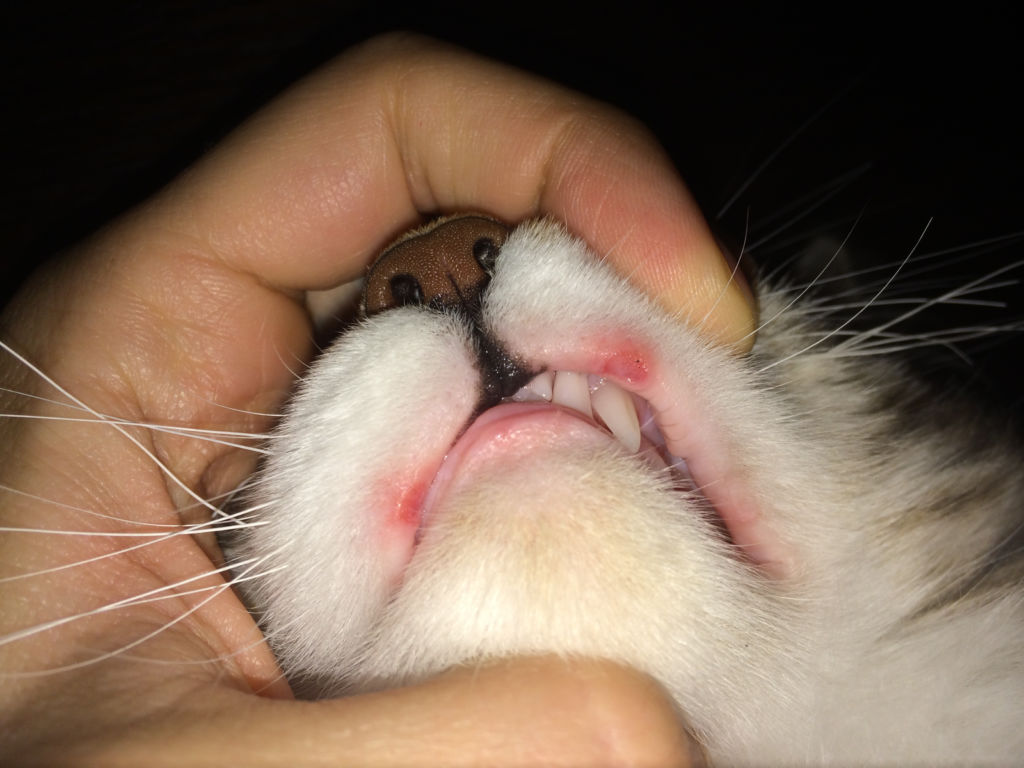 Заподозрить, что кот заболел именно болезнью Якобса можно по расположению пятнышка: оно обычно появляется на верхней губе и в редких случаях на слизистой рта или на нижней губе. Признаки воспаления быстро прогрессируют, ранка начинает углубляться и воспаляться. Болячка плохо поддается заживлению. В запущенных случаях у кота обнажаются зубы и десны.