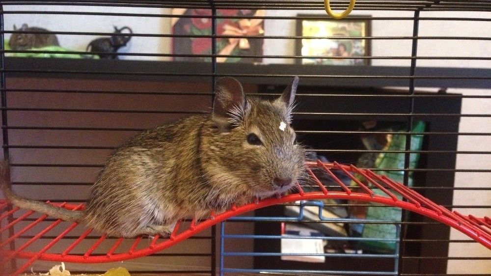 Как мы уже говорили, дегу до страсти любят все грызть, и выбор клетки может стать непростой задачей. Если в доме дегу присутствуют эдементы из пластмассы или дерева, скорее всего они быстро выйдут из строя. Оптимальный вариант – цельнометаллическая клетка.