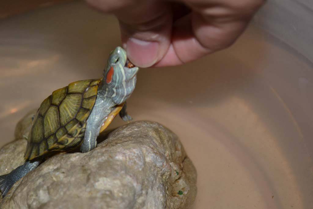 Также она должна съедать весь корм не более чем за 20 минут. Если черепашка начинает играть с кормом и разбрасывать его по аквариуму, то это признак насыщения — необходимо запомнить объём, чтобы в следующий раз положить немного меньше.