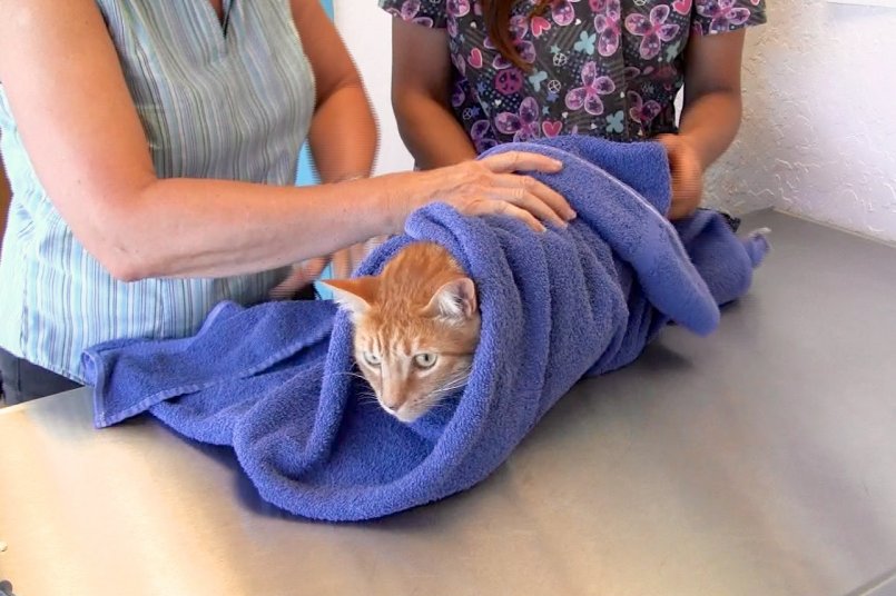 - Зафиксировать питомца. Для этого лучше всего воспользоваться помощью другого человека.