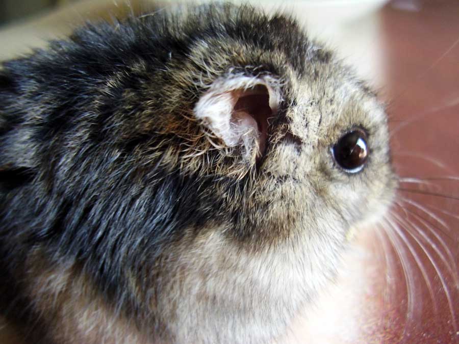 - Хомяк чешется и выглядит беспокойным.