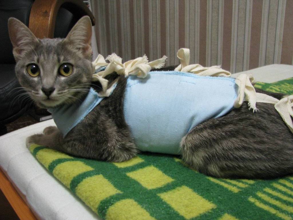 Если кот будет пытаться зализывать рану, придется надеть воротник