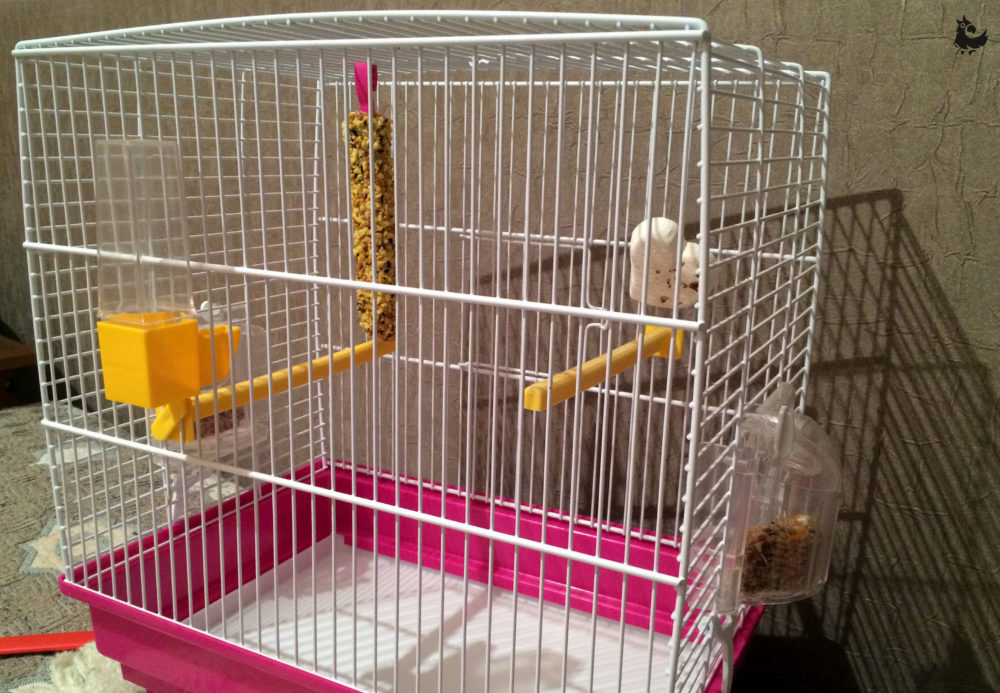 Клетку необходимо покупать просторную, чтобы места хватало для всех необходимых принадлежностей и для игр. Габариты не должны быть меньше, чем 60Х80 см.