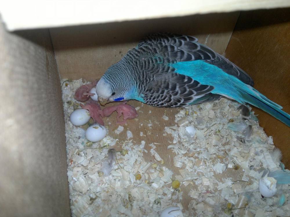 Когда самка попугая дергает хвостом, а живот перед этим заметно увеличился, ждите появление яйца. Второе и последующие выходят с интервалами в день-два, но в гнездо птица садится уже после второго.