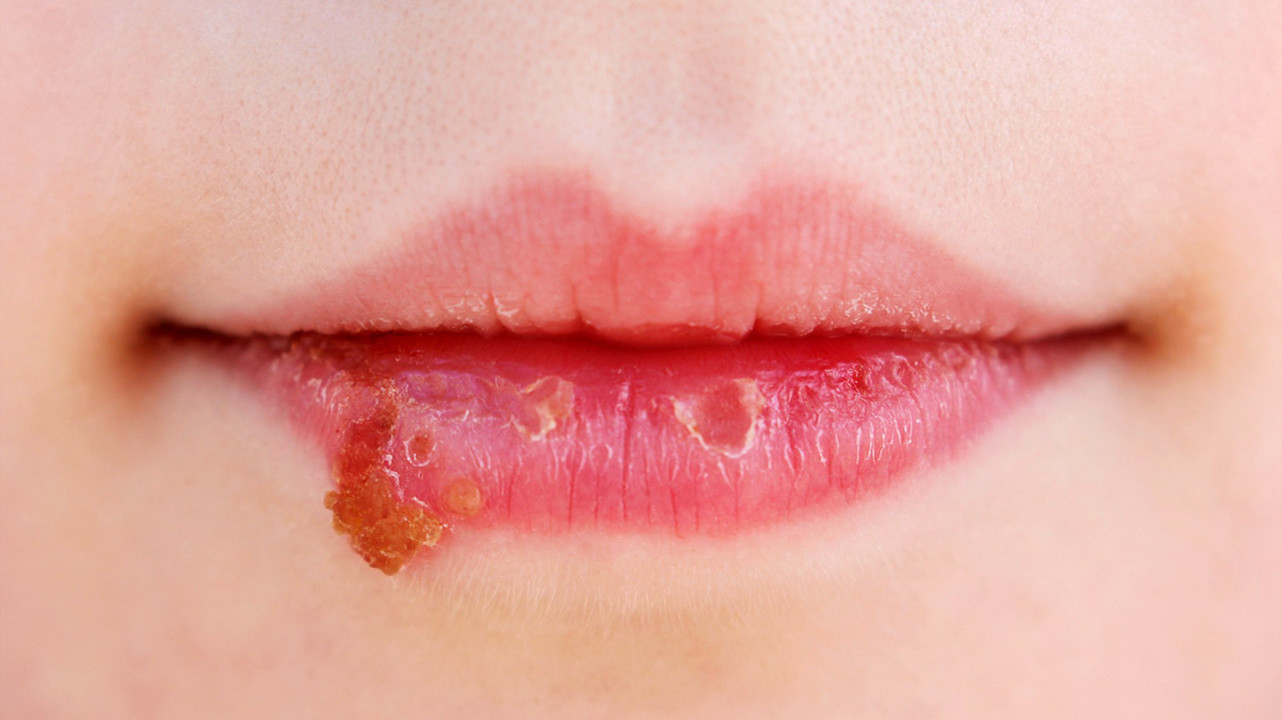 Герпес на губах возникает из-за заражения человека вирусом простого герпеса.